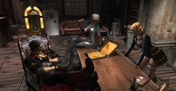 Миссия 05. Дьявольский меч спарда. Двигайтесь по уровню, пока не доберетесь до склада. Сразитесь с первой группой врагов и спрыгните со стеллажей вниз. На стене слева от вас вы увидите кусочек изображения от секретной миссии. Призовите в этом месте Кошмара, чтобы он разломал одну из стен. Теперь вы сможете подняться по лестнице на самый верх и запустить секретную миссию. Чтобы победить, вам нужно убить врагов, не получая урона. На обычной сложности для V и его демонов это не составит труда.