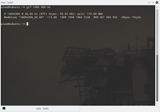 xrandr --newmode "1600x900_60.00" 119.00 1600 1696 1864 2128 900 901 904 932 -HSync +Vsync