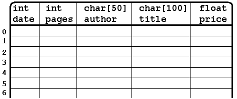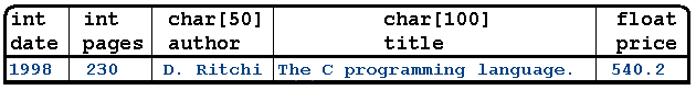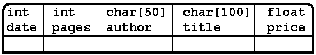 Каждый элемент этого массива это переменная типа book. Т.е. у каждого элемента есть свои поля date, pages, author, title, price. Тут-то и удобно вспомнить о второй интерпретации структуры. В ней массив структур будет выглядеть как таблица.
